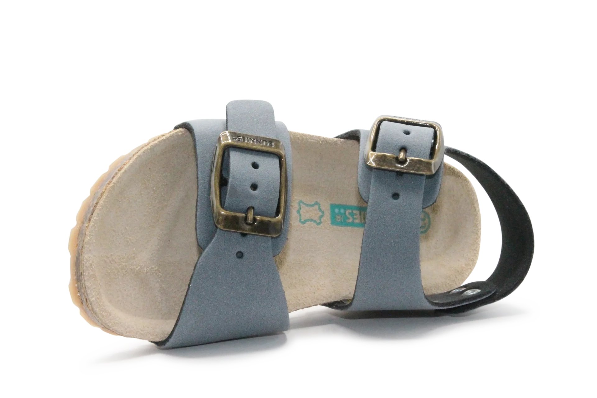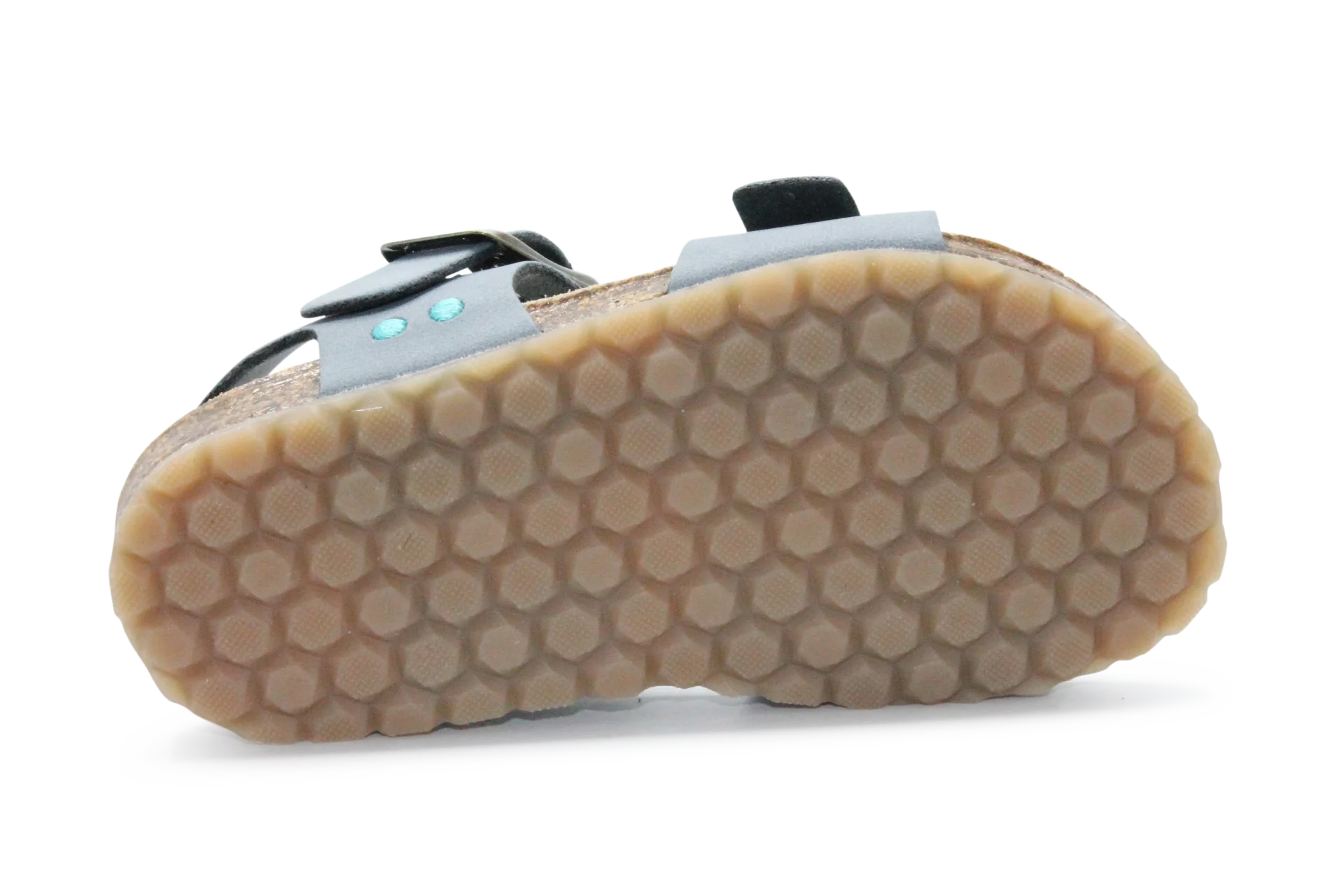 Het suède voetbed met kurken onderlaag biedt natuurlijke ondersteuning en vormt zich comfortabel naar je voet. De rubber zool zorgt voor grip en stabiliteit tijdens het lopen en spelen. Een veelzijdige sandaal die perfect past bij iedere zomerse outfit.