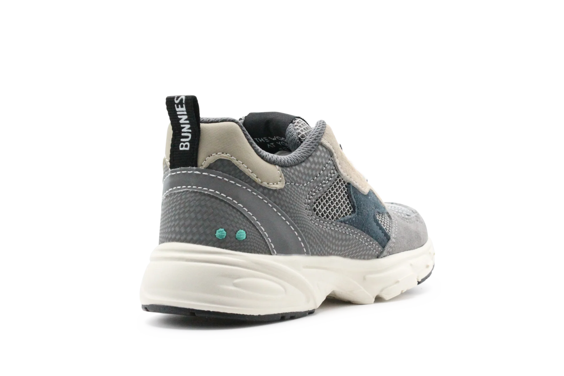 Stoer, comfortabel en helemaal van nu – dat is de Bunnies Daan Dash in grijs! Deze stevige sneaker combineert verschillende tinten grijs met donkerblauwe en zandkleurige accenten voor een eigentijdse look. Het buitenwerk van leer wordt afgewisseld met mesh details voor een sportieve twist, terwijl de binnenkant van zacht textiel zorgt voor extra draagcomfort.