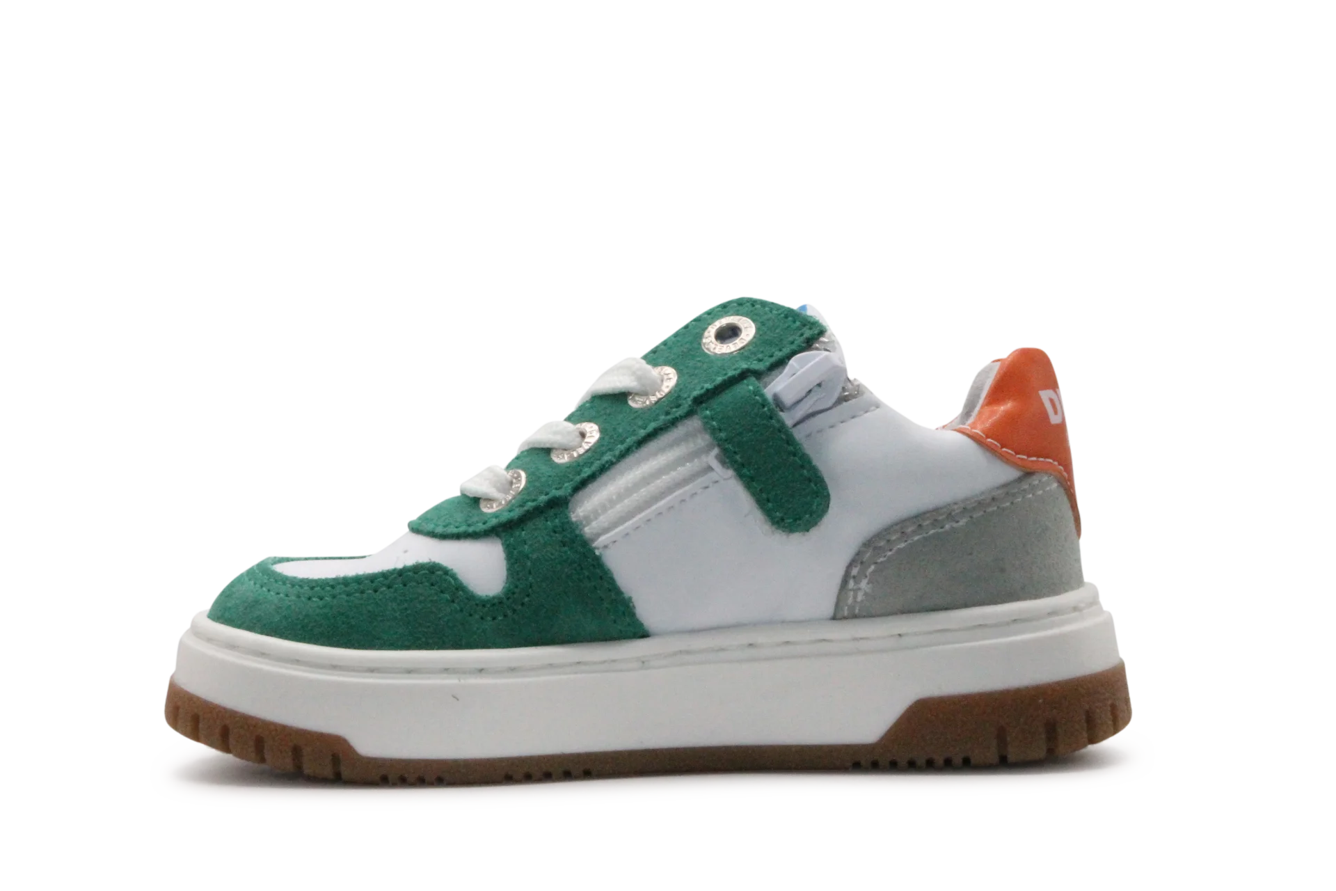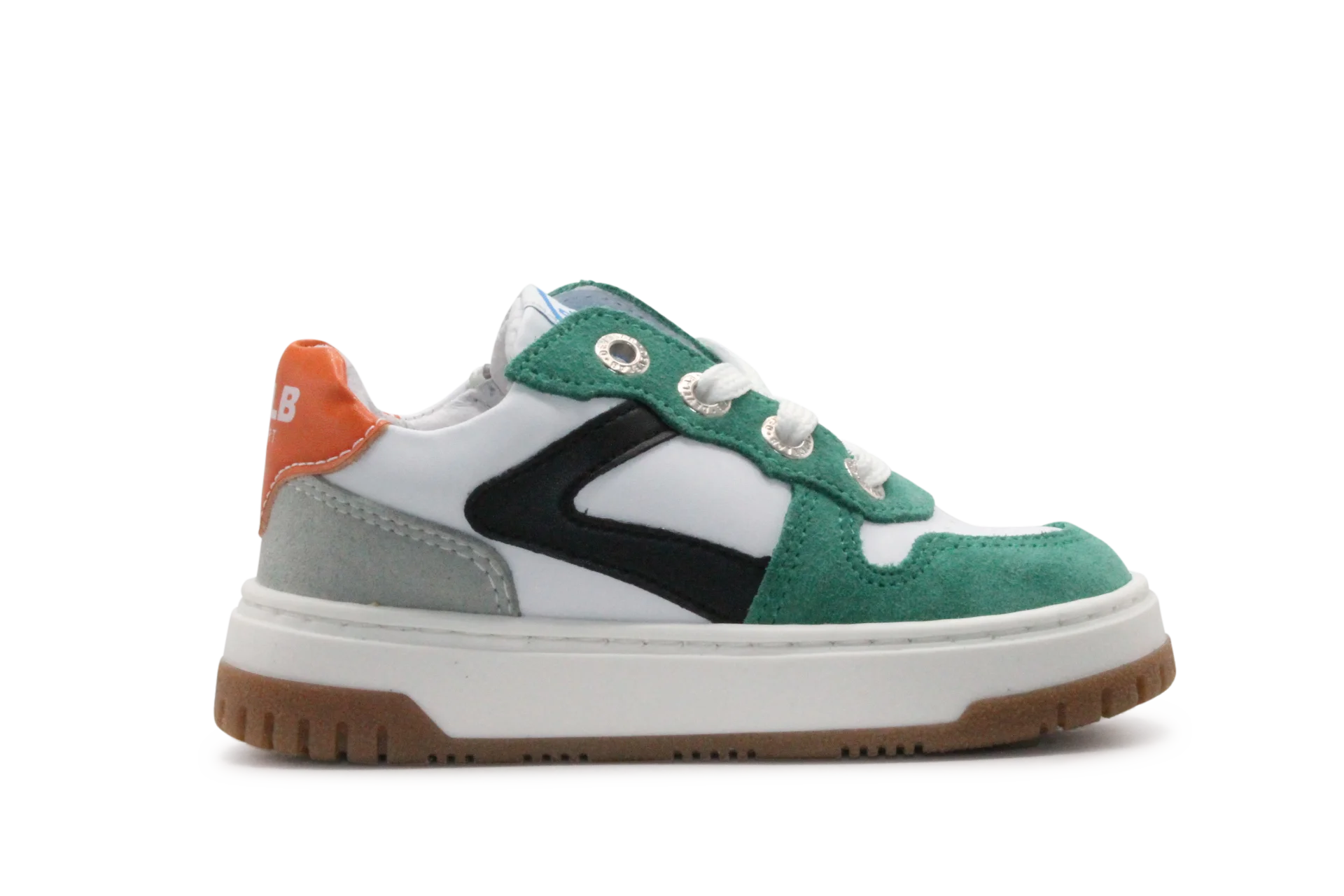 Develab veterschoen 45451 in green is een stoere en frisse toevoeging aan de garderobe van elke jongen. Deze robuuste schoen is volledig uitgevoerd in leer, zowel van binnen als van buiten, en biedt optimale ondersteuning en comfort voor elke stap. De combinatie van donkergroen suède, wit leer en zwarte accenten geeft de schoen een moderne en speelse uitstraling, terwijl het oranje hielstuk voor een sportieve twist zorgt.